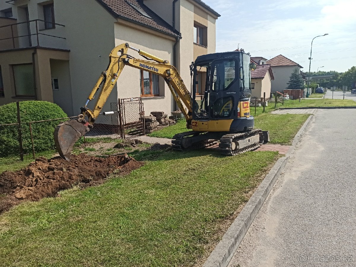 Provádím zemní a výkopové prace- cena 650/h váha stroje 1,6t. 850/h váha stroje 3,7t. 900/h váha stroje 5,5t. Smykový nakladač 3,5t- 900/h, možnost míchání betonu. Příslušenství k bagru - sbíječka, půdní vrtáky. Provádíme terénní úpravy, přípojky, základy rodinných domu, zámkové dlažby, bazény, ploty, atd.