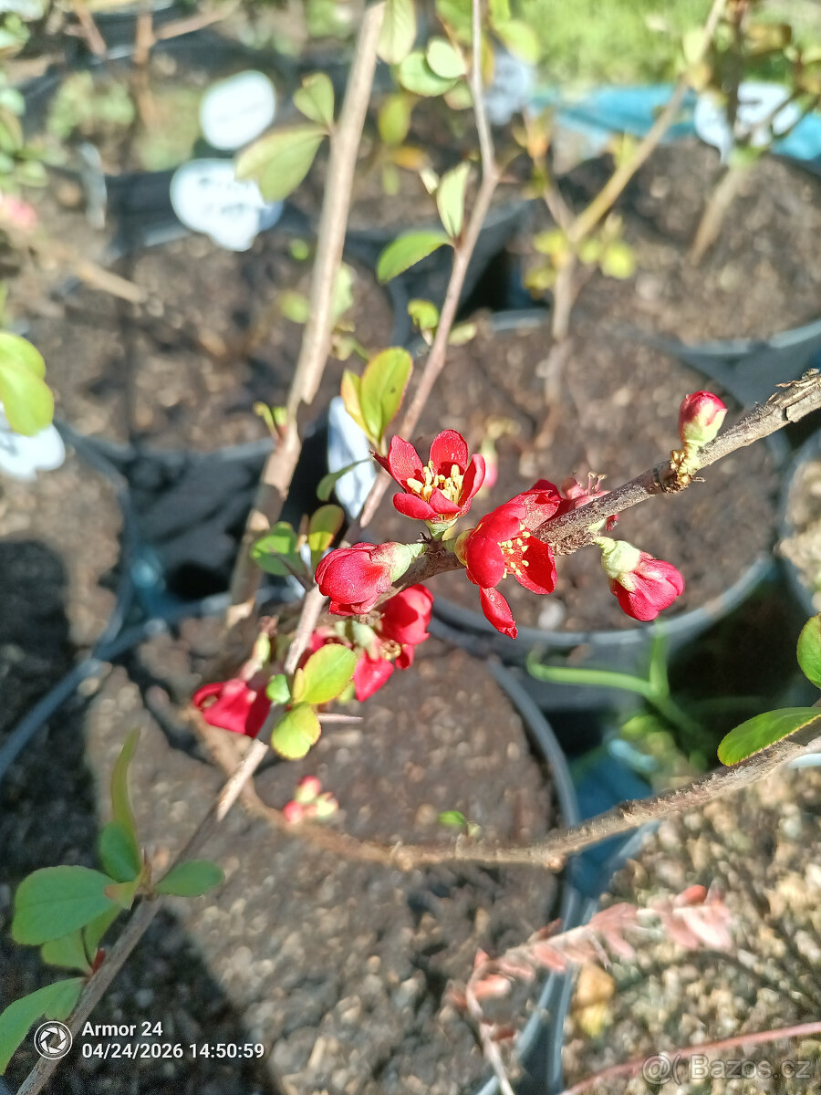 Prodám sazenice Kdoule pomerančové,Kdoulovec Nivalis,Kdoulovec Japonský,Pink Lady a Texas Scarlet.Perfektní na likéry a sirupy.Kdoulovec je velký keř zpočátku vzpřímený a později široce rozložený. Pěstuje se jako okrasná a užitková rostlina díky svým různým květům a žlutým, jedlým plodům.Plody ve tvaru jablka, velké až 8 cm v průměru, dozrávají na podzim. Plody lze použít k výrobě sirupů a likérů.Vykazuje vysokou odolnost vůči mrazu i chorobám. Je snadno pěstovatelný, snáší různé půdní a klimatické podmínky.Odběr možný kdykoliv po předchozí domluvě.Na SMS nereaguji.Od 12 do 15 ti hodin nejsme na telefonu.Koukněte na mé ostatní inzeráty,třeba Vás něco zaujme.Děkuji.Tel:606683783--Foto aktuální