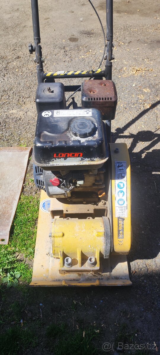Prodám vibrační desku 70kg. Podložka na dlažbu k tomu . Využitá jen kolem domu.