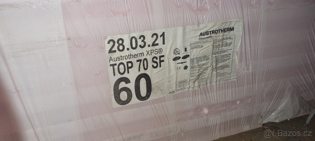 Prodám extrudovaný polystyren s polodrážkou tl. 60mm (austrotherm XPS TOP 70 SF), 5,25 m2/ balík.