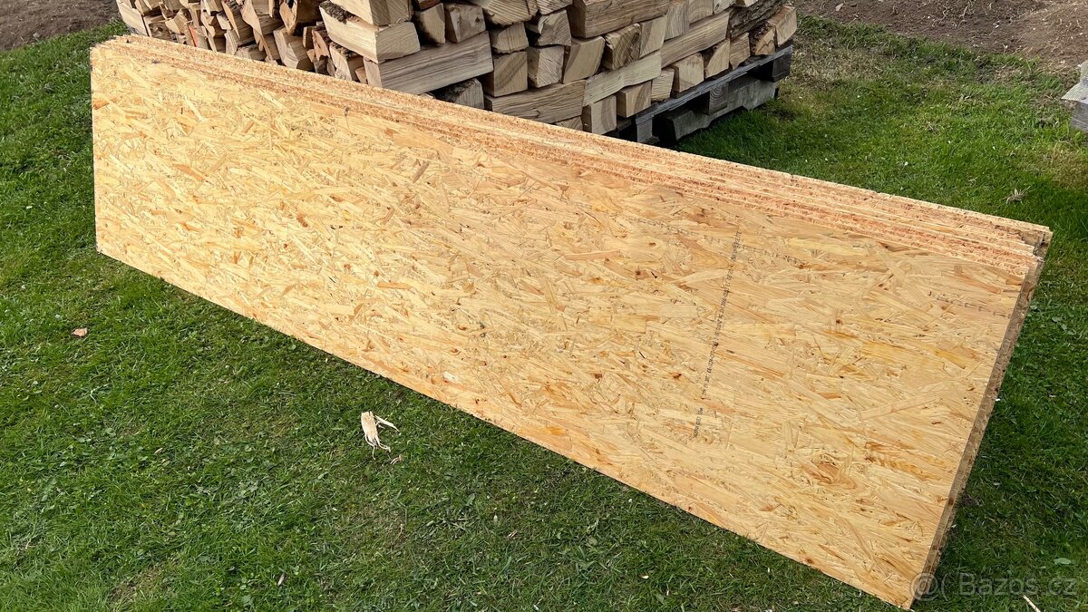 Prodám 14 ks OSB desek o rozměru 250 x 62,5 cm a tloušťce 13 mm. Desky jsou s perodrážkou.