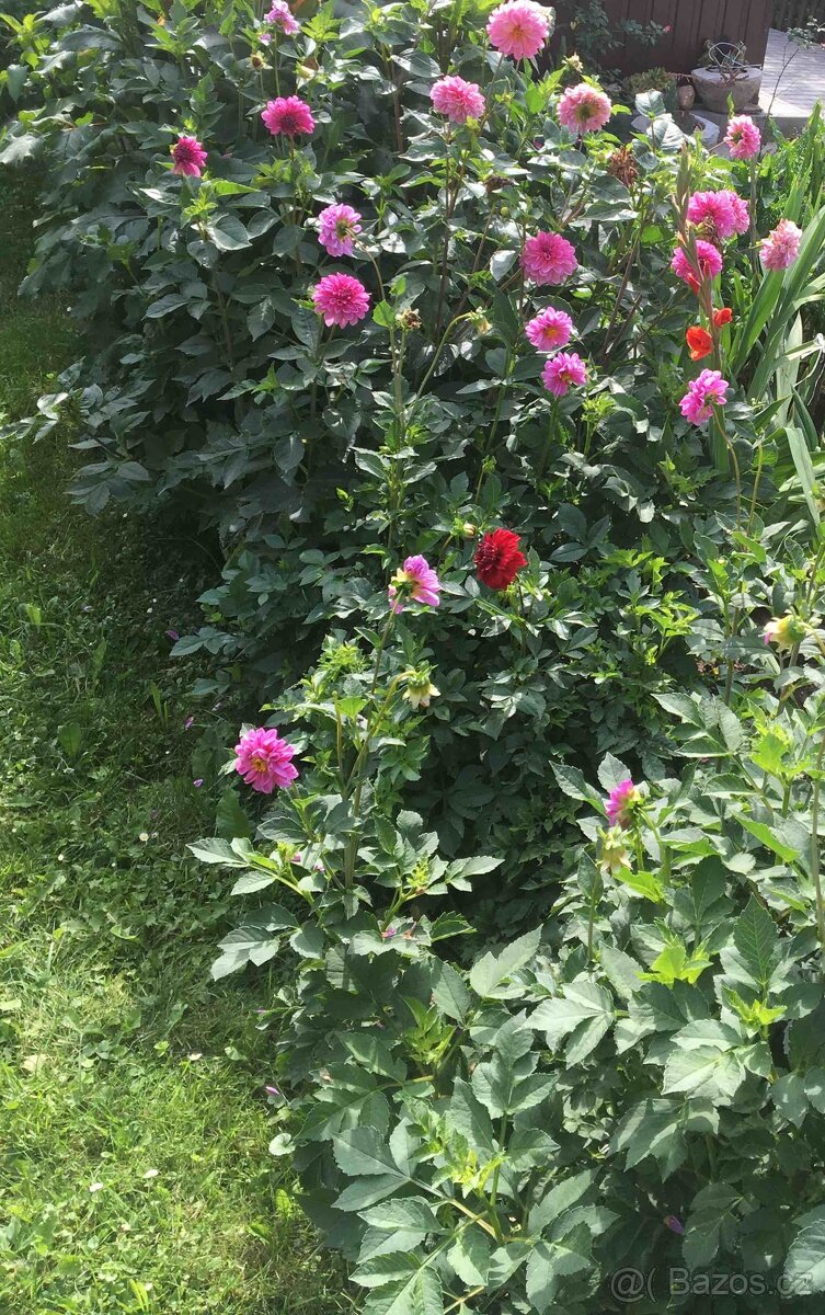 Nabízím přebytky hlíz k sadbě: Jiřinka růžová - velikost 1m, Jiřinka červená velikost 1,5m, Kany červené velikost 1,5m.