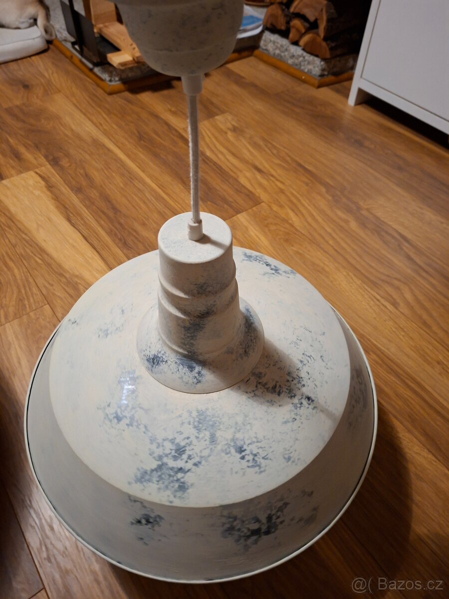 Prodám kovové stropní svítidlo Eglo.Barva bílá s patinou.Průměr cylindru 46 cm.