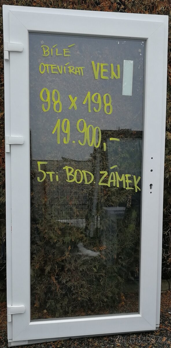 Dveře vchodové prosklené plastové bílé, tyto nové na fotce otevíravé VEN s cenou a rozměrem.
