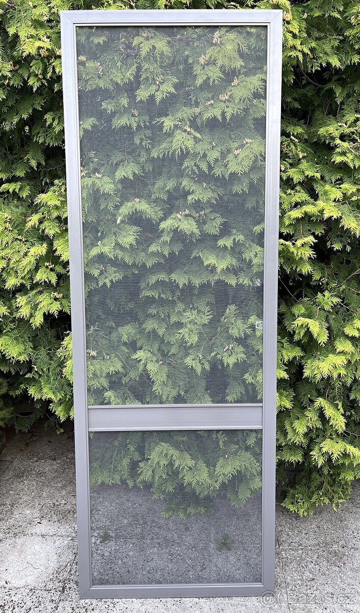 Prodám zcela novou, nepoužitou dveřní sít proti hmyzu, mat.hliník, barva šedá RAL 9007, rozměry