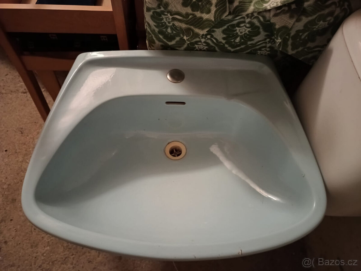použité umyvadlo ve světle modré barvě