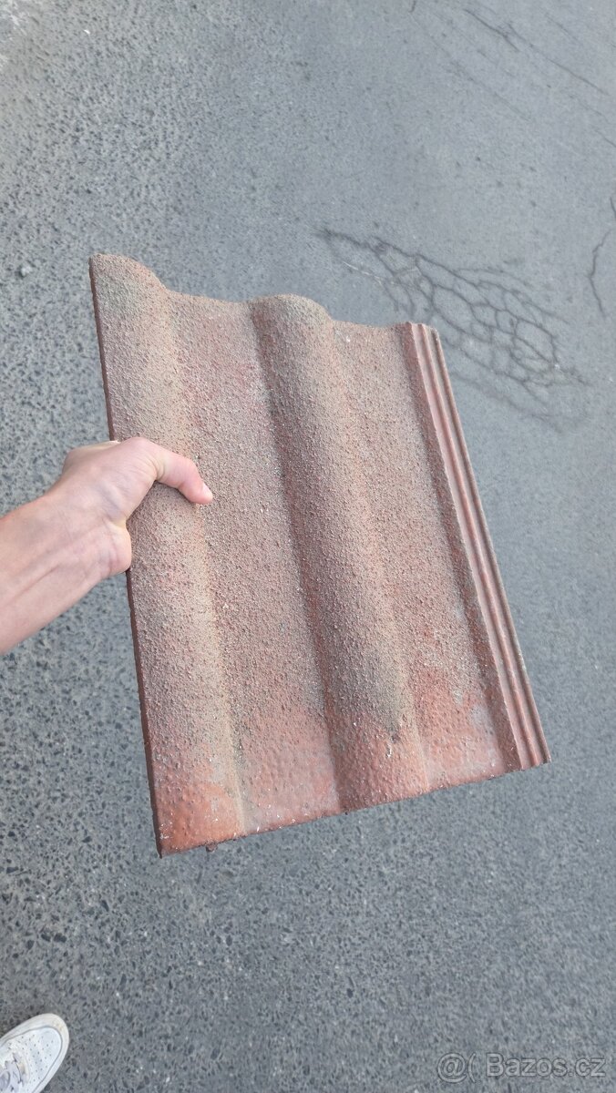 Nabízím k odvozu betonové střešní tašky značky Bramac, standard EN 490, cihlově hnědá barva. Tašky jsou ve velmi dobrém stavu – bez prasklin, celé.