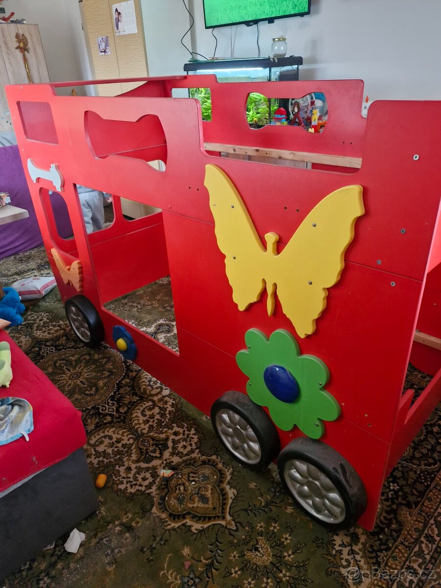 Velmi zachovalá dětská patrová postel ve tvaru hasičského auta za 1500 kč jen sms nebo volat na číslo 607932418