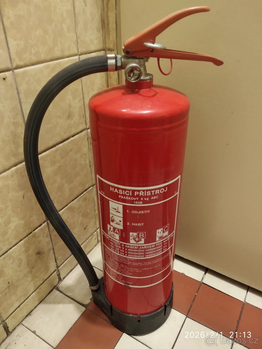 Hasící přístroj práškový ABC 6kg - [9.4. 2026]Hasící přístroj na domácí použití (nemá platnou revizi), funkční... k dispozici je více kusů.