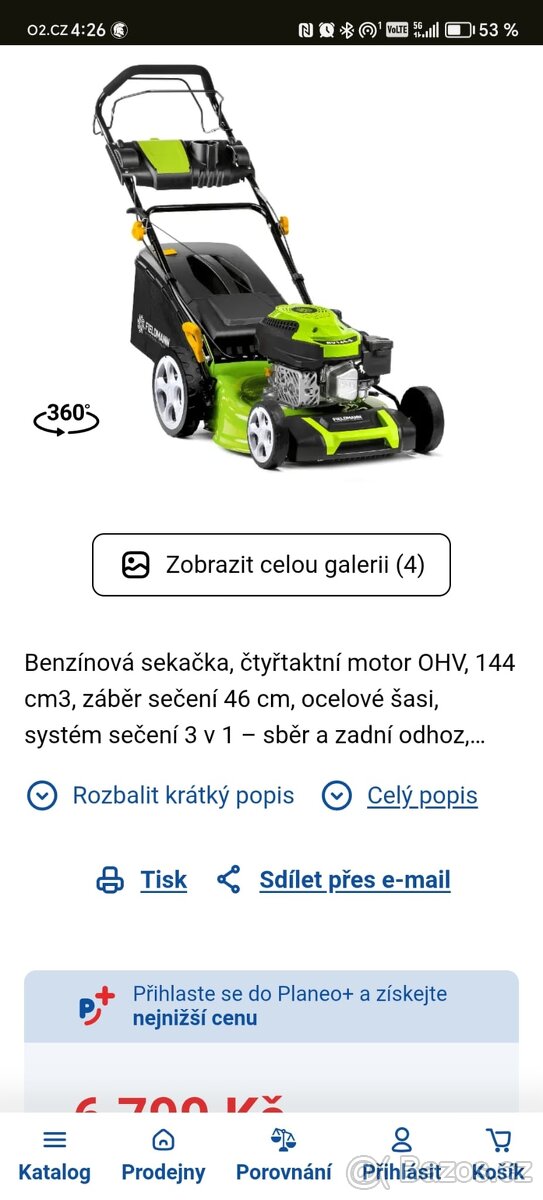Benzinova sekačka s pojezdem - TOP - [13.4. 2026]Fieldmann FZR 4008-79B originalni cena 6000kc